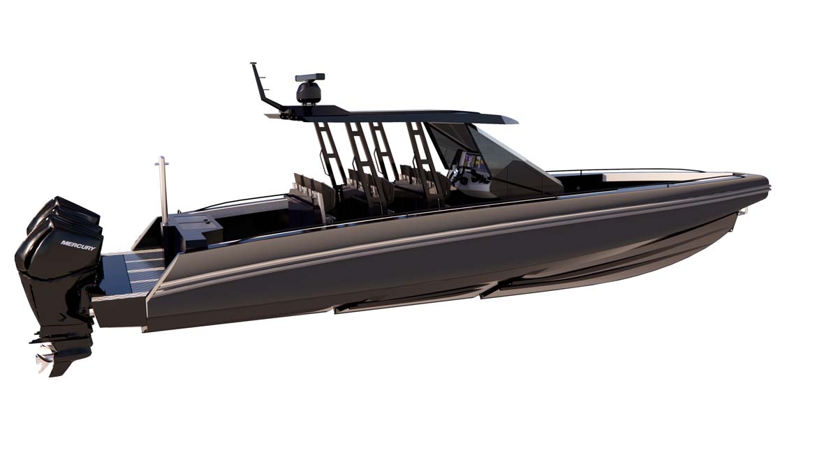Fearless 38 is a boat of about 12m designed for professional uses, or those who want a pleasure boat or fishing one with robust characteristics, durability and safety at the highest levels. The performance are very high, and you can see it from design; the deep V hull , double stepped, developed with CFD technologies, combined with the super-resistant aluminum structure, is designed to tackle the waves at exciting speeds and to support very powerful engines. The deck has wide side passages, a space for live bait and fish tanks, 8 forward-facing cushioned seats, generously sized and well-protected console, with space for large screens and electronics; large free deck to favor fishing action, changing room with bathroom. The walkaround version differs for adding the possibility of having a cabin with bathroom and double bed.
