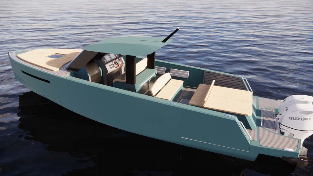 Engine choice is wide, main option is outboards from 2x250 to 2x450 hp, and it is possible also to use inboard/sterndrive or IPS diesel engines.