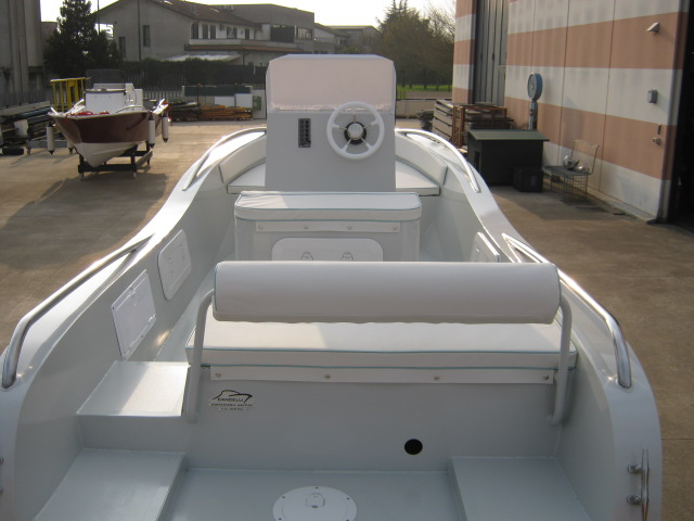Facile da guidare, manovriera, stabile, asciutta, Akes 19 non impenna mai ed è anche incredibilmente robusta. Grazie alla lega di alluminio marino di notevole spessore, al sistema di grigliato strutturale continuo e verificato mediante software di analisi strutturale 3D, Akes 19 è in grado di sopportare ogni tipo di sollecitazione ondosa senza alcuna preoccupazione. La saldatura continua e la coperta strutturale concorrono a formare un monolite senza punti deboli. Quindi doti marine , ma anche comfort a bordo. La generosa superficie di coperta è accessibile tramite due spaziose plancette su cui poggia la scaletta di risalita, la poppa prevede un ampio divano poppiero con schienale dove possono trovarecomoda seduta 3 persone, subito di fronte un mobile che può accogliere un frigorifero e forma il poggiareni -seduta di guida. Lo spazio tra gli elementi di coperta è sempre elevato e non si sta mai stretti. La consolle dell' Akes 19 è di buone dimensioni, per evitare stili di guida "rannicchiati, incurvati e striminziti", cose purtroppo comuni su barche classiche di questa lunghezza. Il volante alla giusta altezza, il parabrezza ripara dal vento nella guida, la larghezza è più che abbondante per poter montare ogni tipo di strumentazione,anche un iPad o un GPS da 9 pollici. Davanti alla consolle è presente una comoda seduta frontemarcia, di dimensioni giuste e non "finta" come spesso si trova. A prua è previsto un divano a ferro di cavallo con possibilità di pianetto centrale che può assolvere la funzione di tavolino o concorrere a formare un area prendisole. Il pagliolato è drenato da ombrinali di elevato diametro e cela serbatoio carburante in polietilene reticolato e serbatoio acqua. Akes 19 è completamente ispezionabile. Per i pescatori, sono previsti portacanne a incasso e zonelibere a richiesta. Akes 19 è disponibile con livree di vari colori e optionals su richiesta. La barca è inaffondabile (polistirene all' interno) e compartimentata , oltrechè autosvuotante anche da fermo.